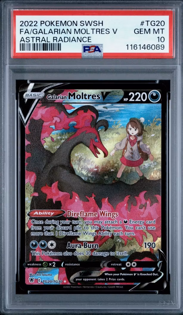 Galarian Moltres V #TG20 - Astral Radiance (PSA 10) - Pokevibes.no