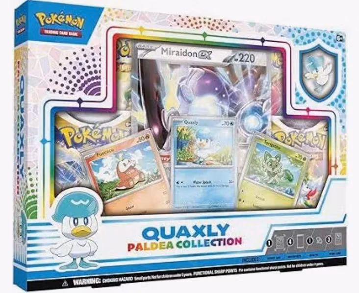 Ifølge offisielle spesifikasjoner fra Pokémon Center og Walmart, inneholder hver Quaxly Paldea Collection følgende: