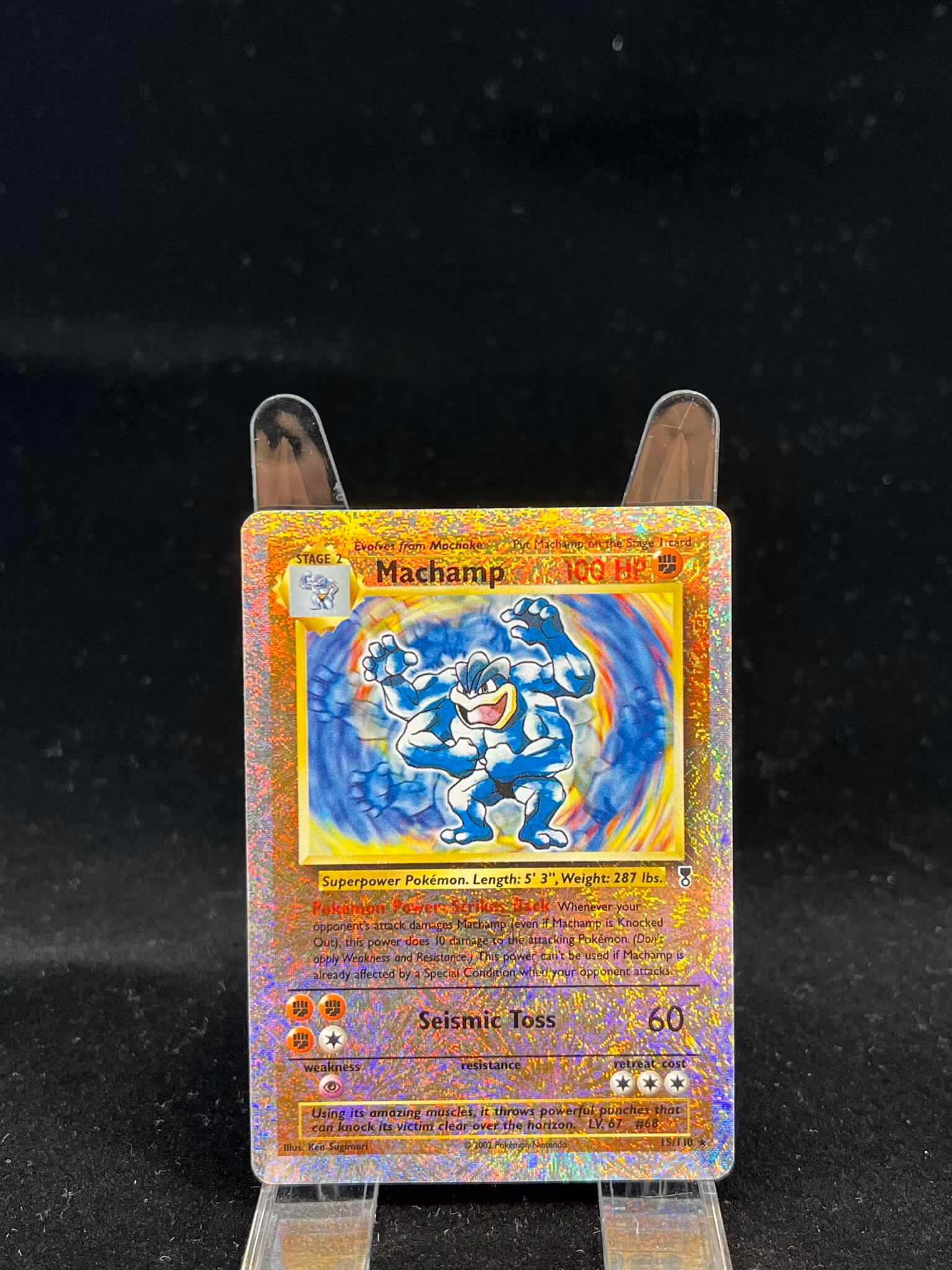 Kortet er LP. Som man kan se på bildene er det litt hvite merker samt slitasje i noen av hjørnene, men ikke markant. Fremsiden er relativt clean, med pitte litt skraper helt øverst som er nesten usynlig.