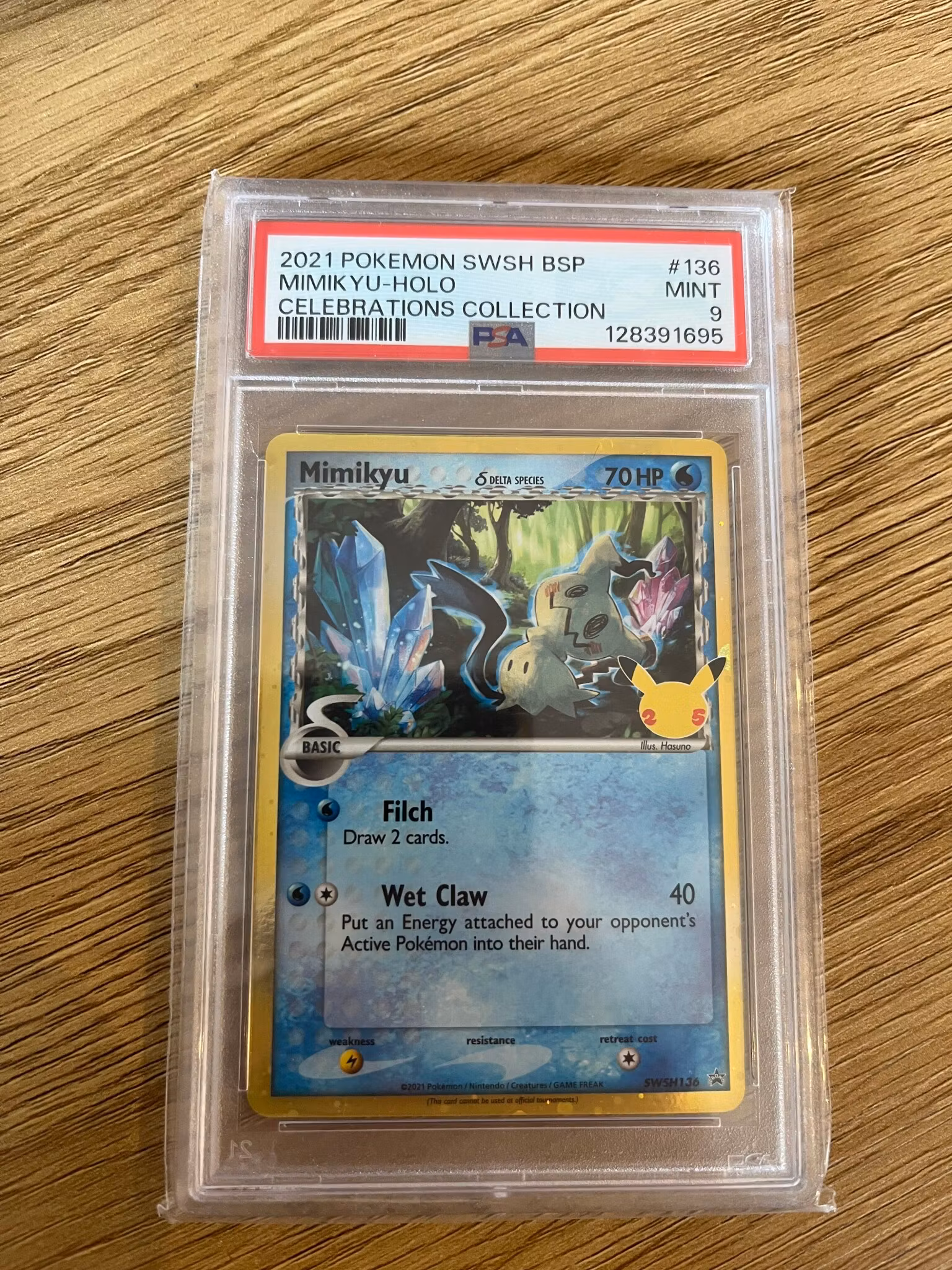Mimikyu SWSH136 Celebrations PSA 9 - Pokevibes.no